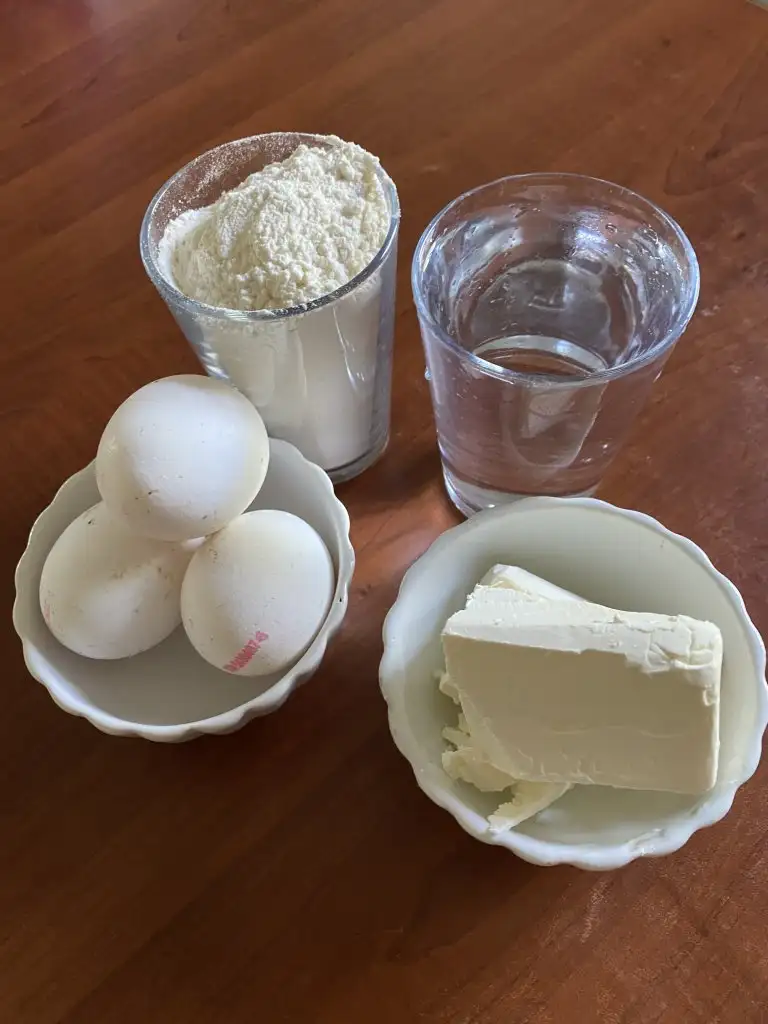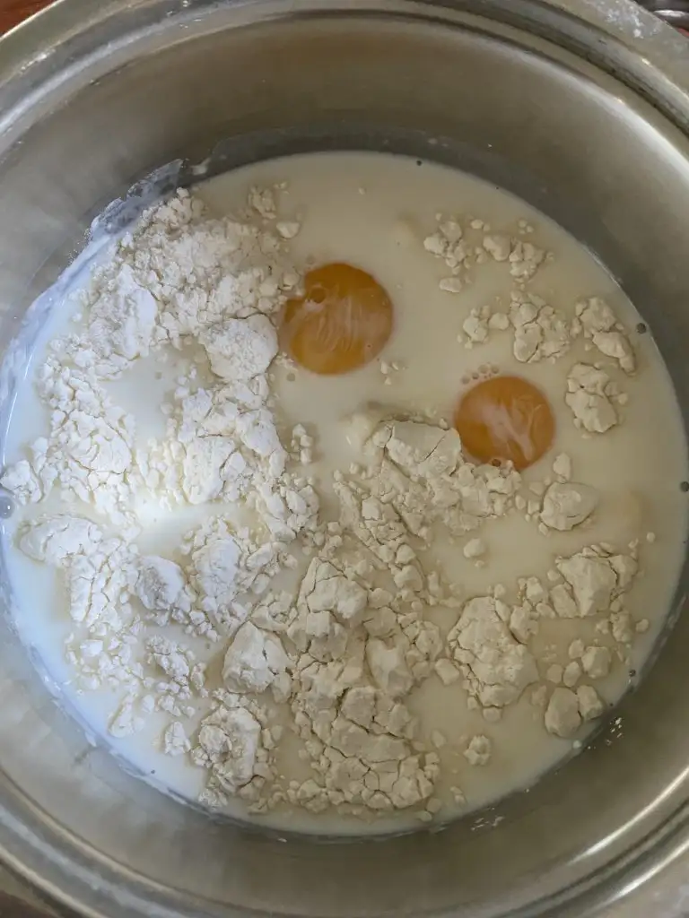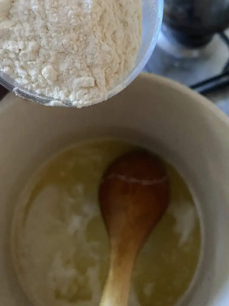 Tereyağı ve suyu bir tencereye alıp, kaynamaya başlayınca tuzunu atıyoruz. Unu azar azar ekleyerek, hamurumuzu homojen bir kıvama getiriyoruz.