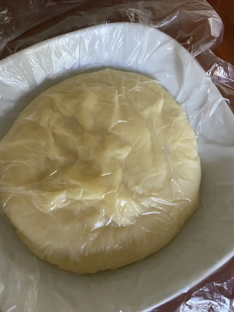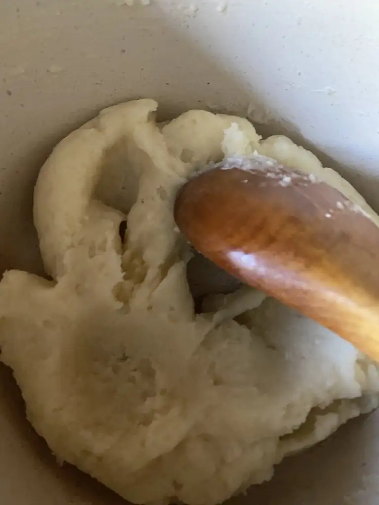 Hamurumuz özleşince, 2 dk daha tencerede kaşık yardımı ile yoğuruyoruz ve altını kapatıp soğutuyoruz.