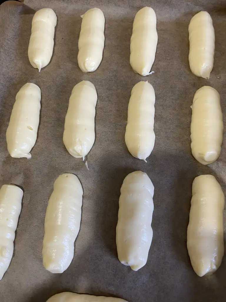 Sıkma torbamızdaki hamurunu parmak boyutunda yağlı kağıt serdiğimiz tepsiye sıkıyoruz.