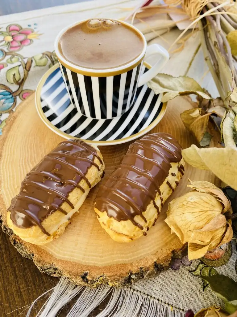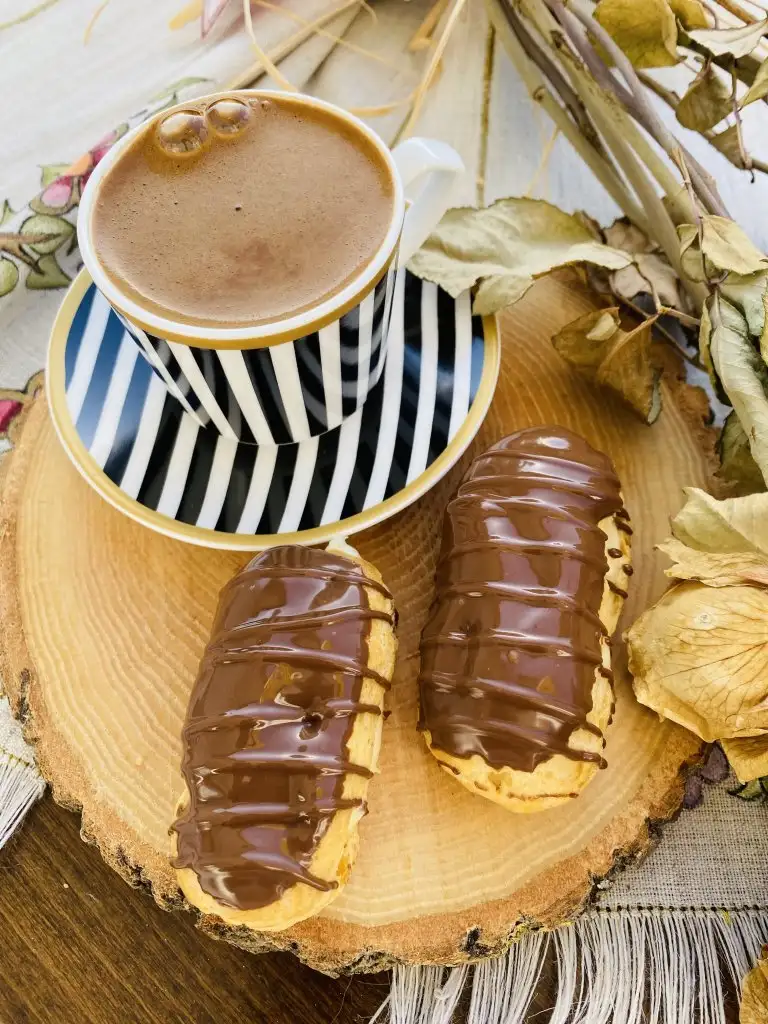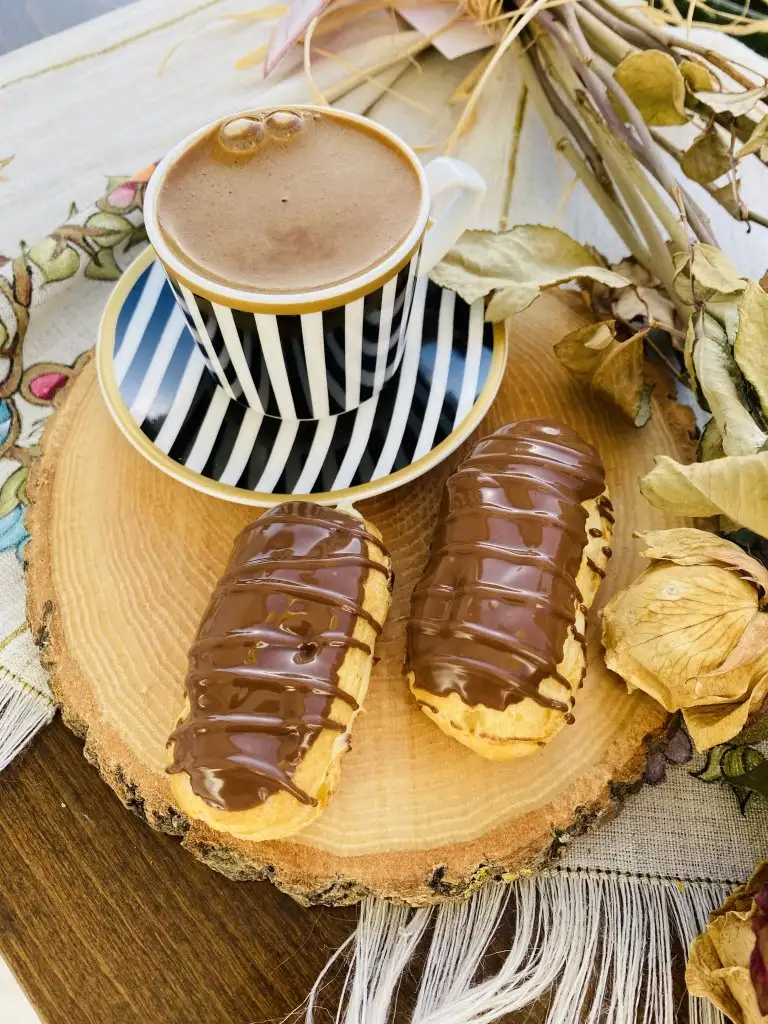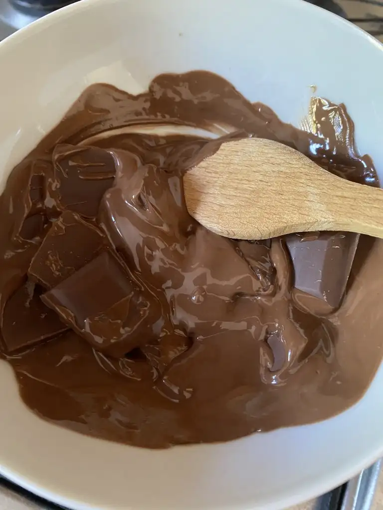 Çikolatalarımızı benmari usulü eritiyoruz ve eklerlerimizin üst kısmını banıyoruz.