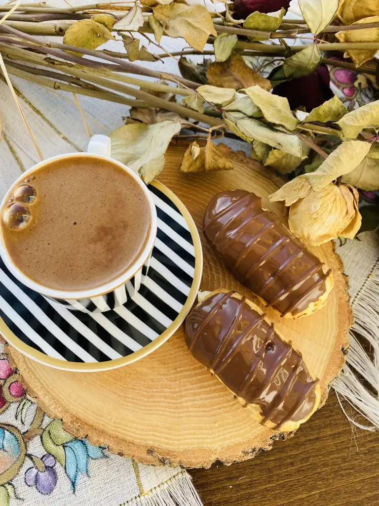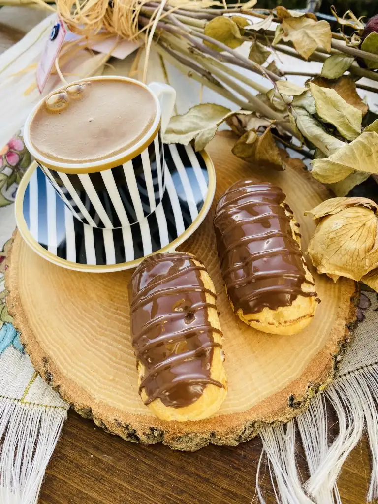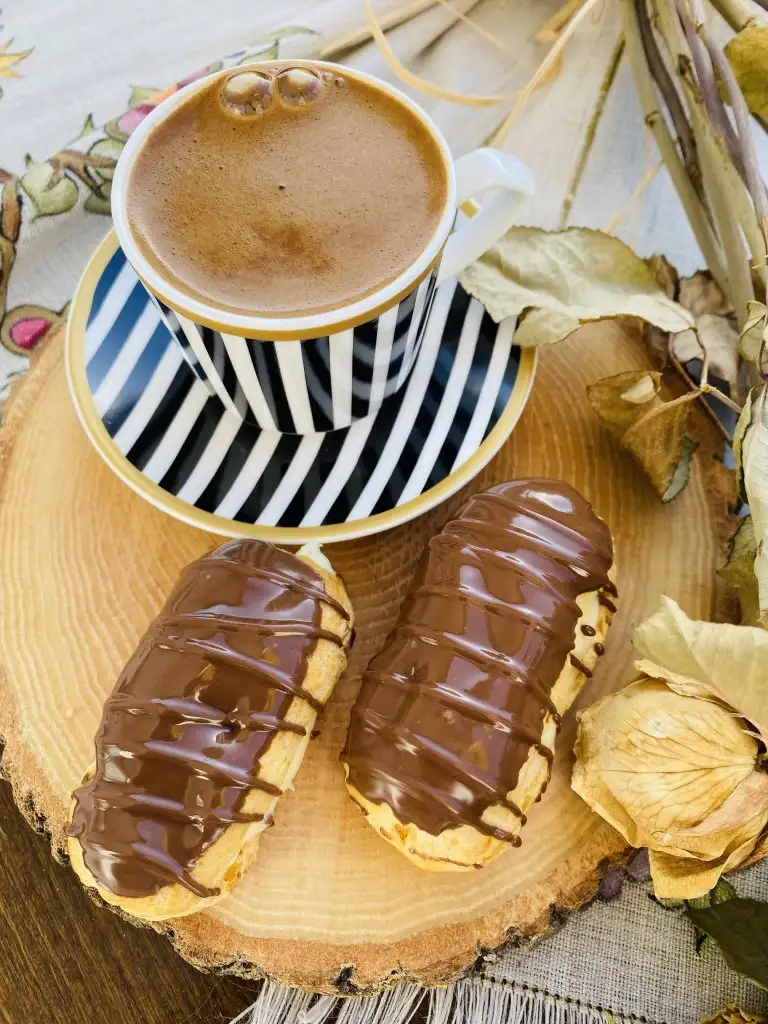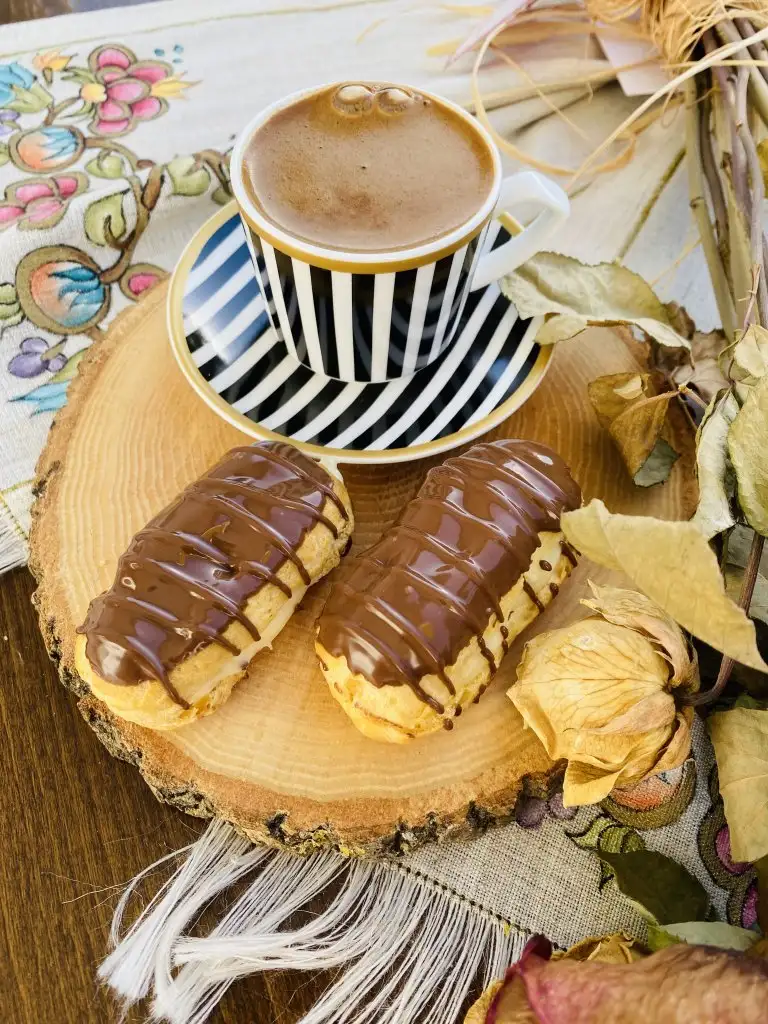 Çikolatalarımızı benmari usulü eritiyoruz ve eklerlerimizin üst kısmını banıyoruz.