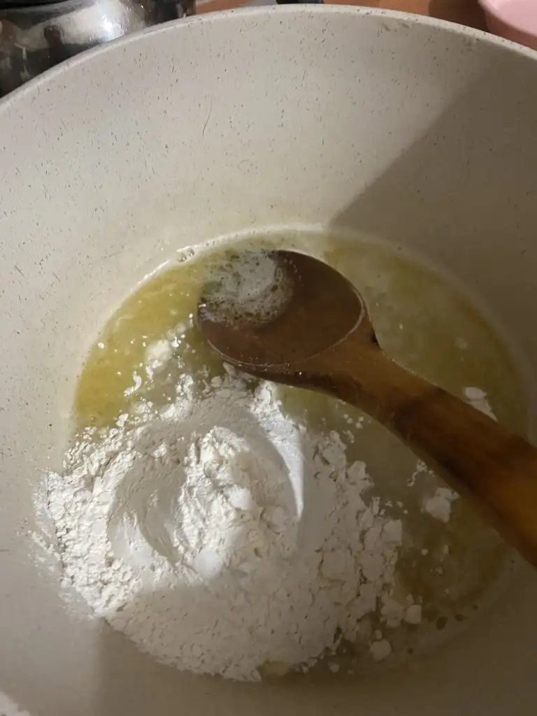Tereyağı ve suyu bir tencereye alıp, kaynamaya başlayınca tuzunu atıyoruz. Unu azar azar ekleyerek, hamurumuzu homojen bir kıvama getiriyoruz.
