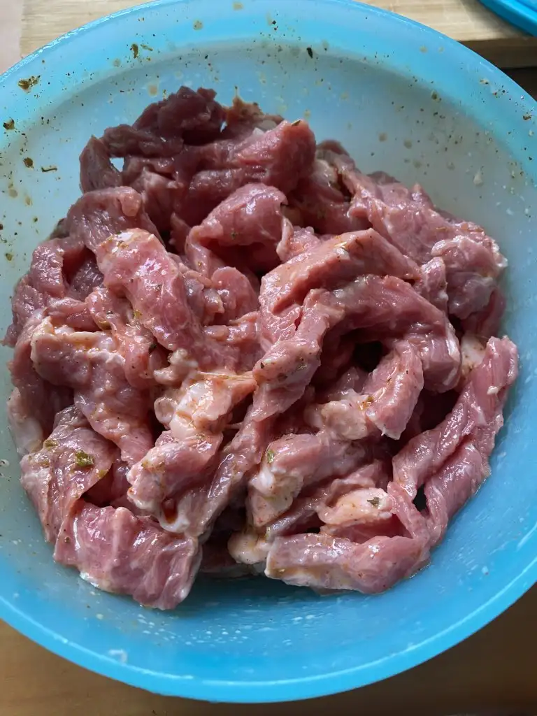 Antrikotlarımızı şerit halinde kesip, marine sosumuza bulayıp 2 saat dinlendiriyoruz.