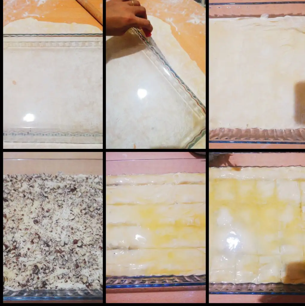 Üç kat hamurumuzu koyduktan sonra fındık içimizi serpip aynı şekilde devam ediyoruz.