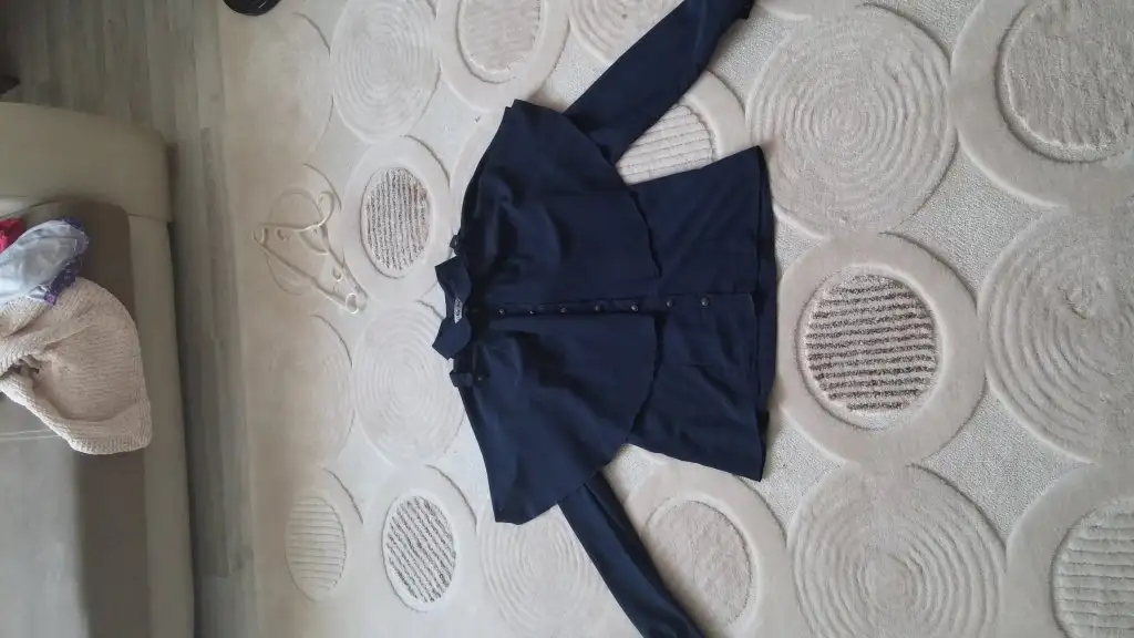 38 beden lacivert pelerin detaylı(pelerinin yakada düğmesi var.istenirse pelerinsizde kullanılabilir) krep gömlek.fiyat:30 kullanım:2 kez