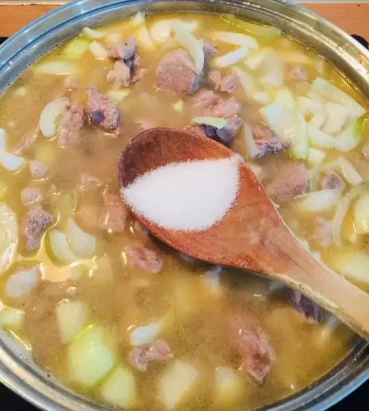 Daha sonra suyu ilave edip tuz ekliyoruz