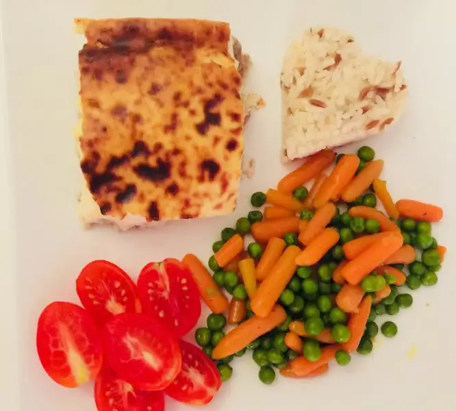 Pilav ve bezelye garnituru ile servis ediyoruz