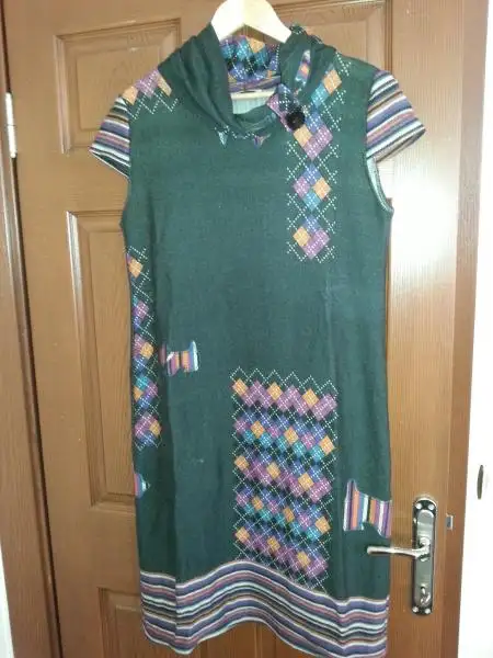 42 beden. Bir beden alt ve üst için de olur. Boyundan bağlamalı bileğe kadar.