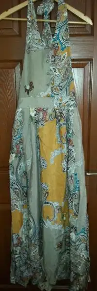 Batik marka. 38 beden. 40 ve 42 için de olur diye düşünüyorum. Yine yazlık. Boyundan bağlamalı.