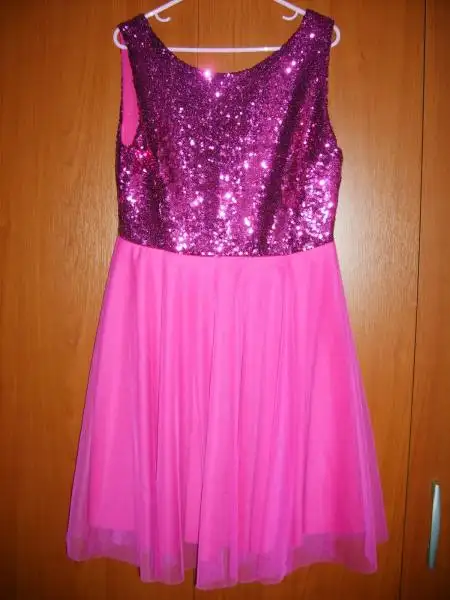 ilk resim stüdyo çekimi olduğu için üst payetli kısmı biraz mor gibi çıkmış ama asıl rengi tülünün rengi fuşya