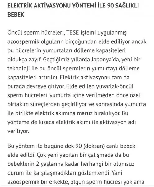 Erkek İnfertilitesiElektrik akımı aktivasyon yöntemi