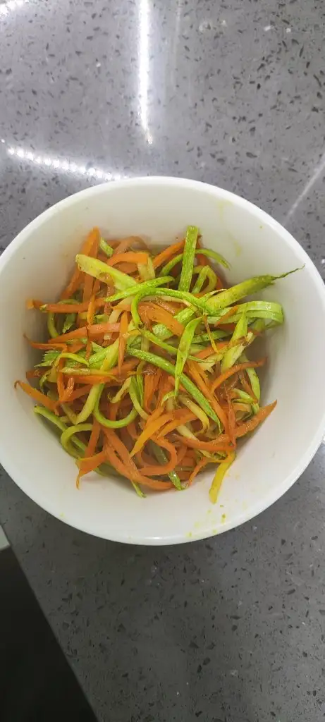 1 havucu şeritli soyacakla kesip tavaya biraz yag ve biraz su koyarak soteledim