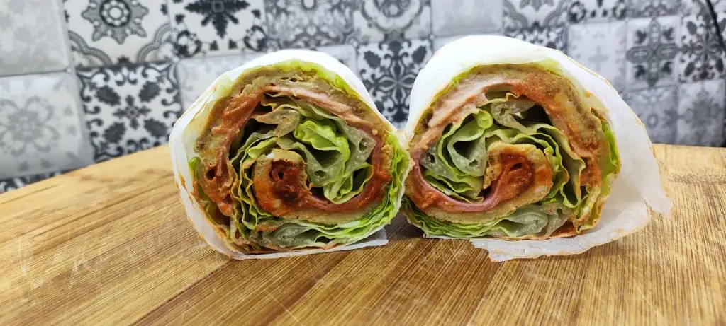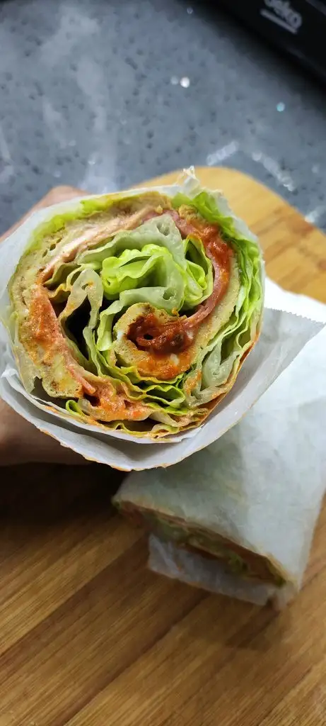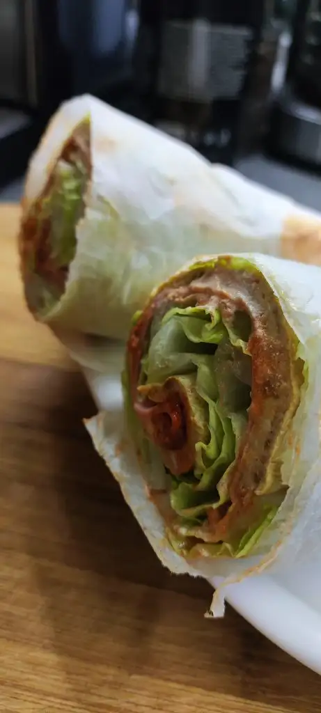 Bunu ilk öğün olarak yaptığımda tambugday lavasla dürüm yapiyorum,aksam olunca marul ile