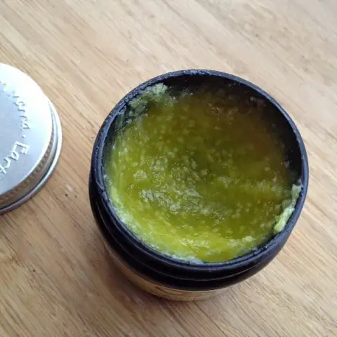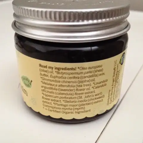 Olea europea (organik zeytin) yağı, Butyrospermum parkii (organik shea) yağı, Euphorbia cerifera (candelilla) balmumu, Simmondsia chinensis (organik jojoba) yağı, Melaleuca alternifolia (organik çay ağacı), Lavandula angustifolia (organik lavanta) çiçeği yağı, Calendula officinalis (organik aynısafa) çiçeği ekstresi, Hypericum perforatum (organik sarı kantaron) çiçeği ekstresi, Stelleria media (organik kuş otu) ekstresi, Plantago major(organik sinir otu) ekstresi, Commiphora myrrha (mürsafi)