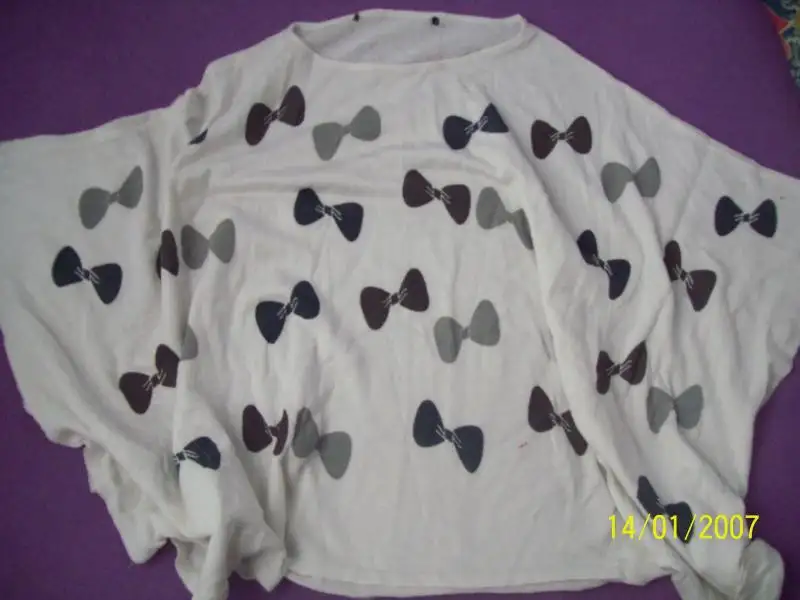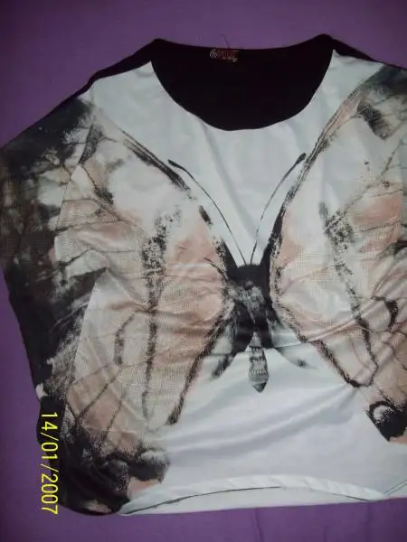 kelebek desenli yarasa kol salaş tişört. hiç giyilmedi. yüksek bedenlere de olur. 5 lira