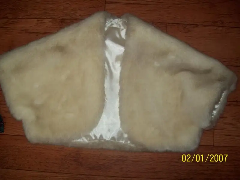 krem rengi içi astarlı yapay kürk. hiç giyilmedi. bu da çok şık bi ürün. 7 lira