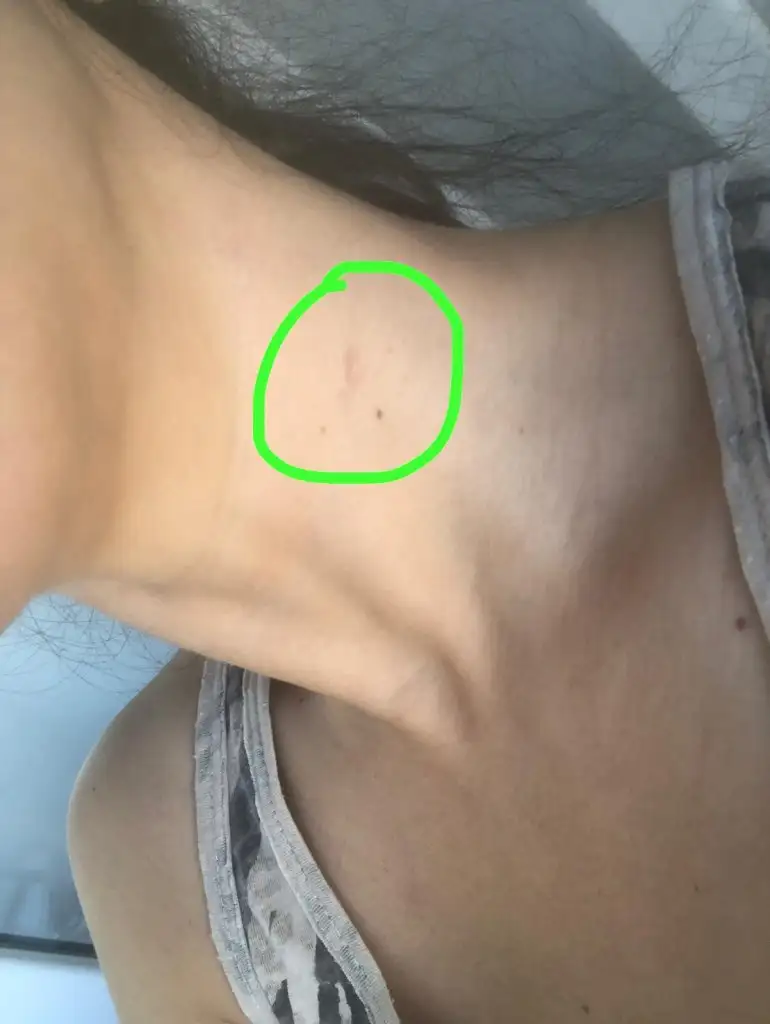 Özellikle beni rahatsız eden erimeyen topaklanma burası. Yara izi gibi görünüyorTeşekkür ederim bilgiler için. Ellanse dolgu boynunda erimedi mi ? Kaç yıl oldu yaptıralı?
