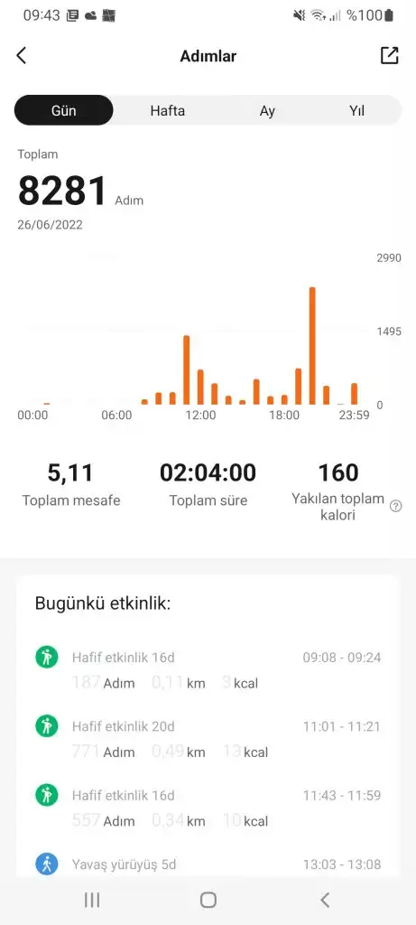 26 haziran pazar adım sayısı