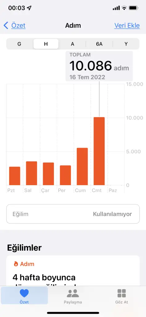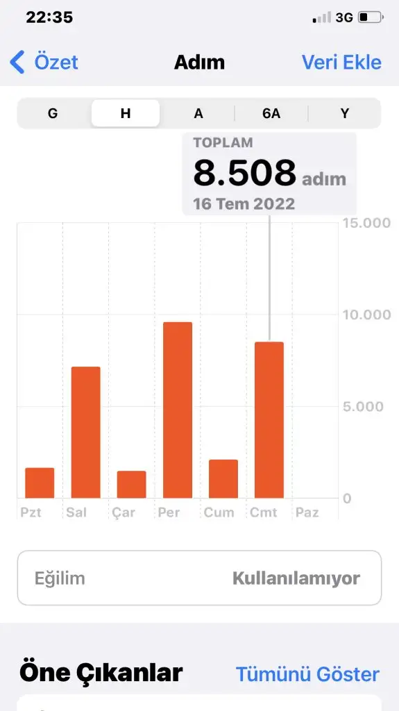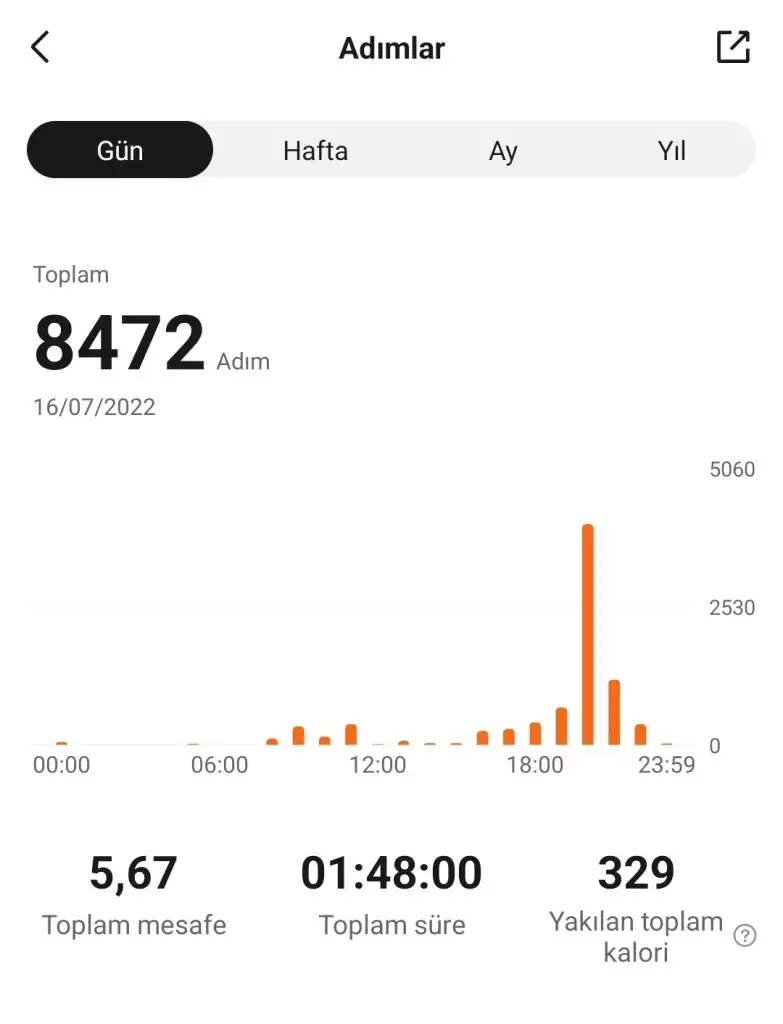 Yemekten sonra full yürüyüş yaptık ama adım sayısı saatten dolayı yok