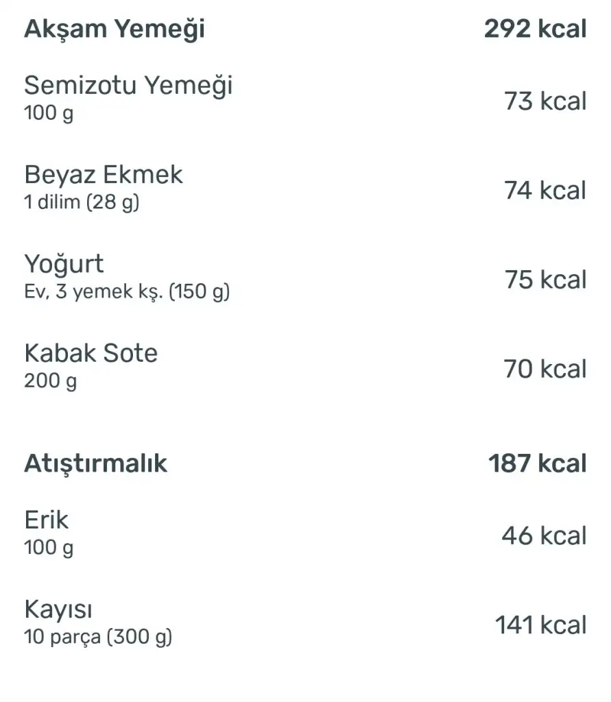 Öğle: 1 kepçe yoğurt çorbası, 6 yk ıspanak yemeği, salata