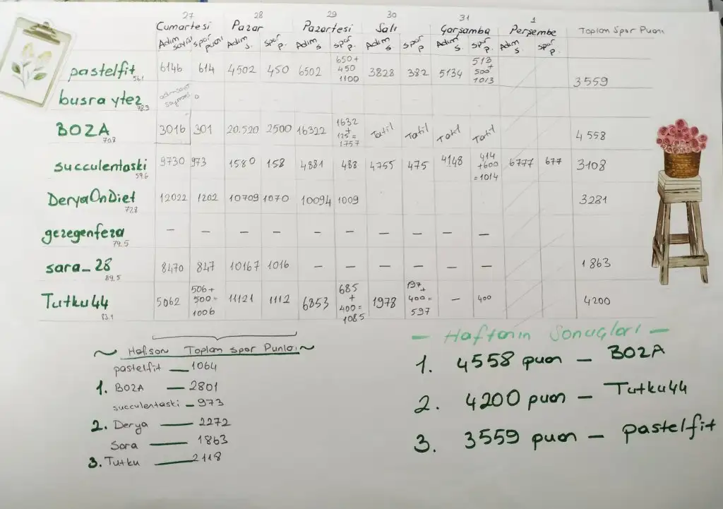 Haftanin toplam spor puanlarınin neticesinde