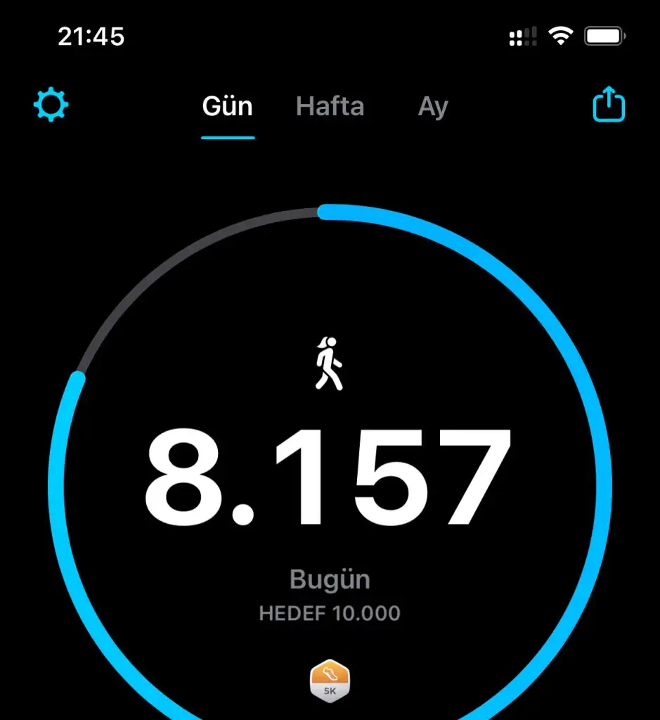 18 Eylül pazar 5100 demiştim ama 5845 adım yapmışım.