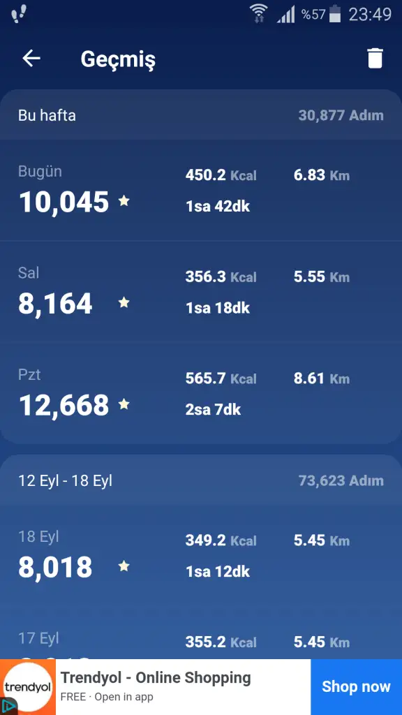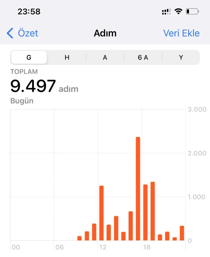Su 3.5 litre spor 20 dakika tempolu yürüyüş ve 8087 adım