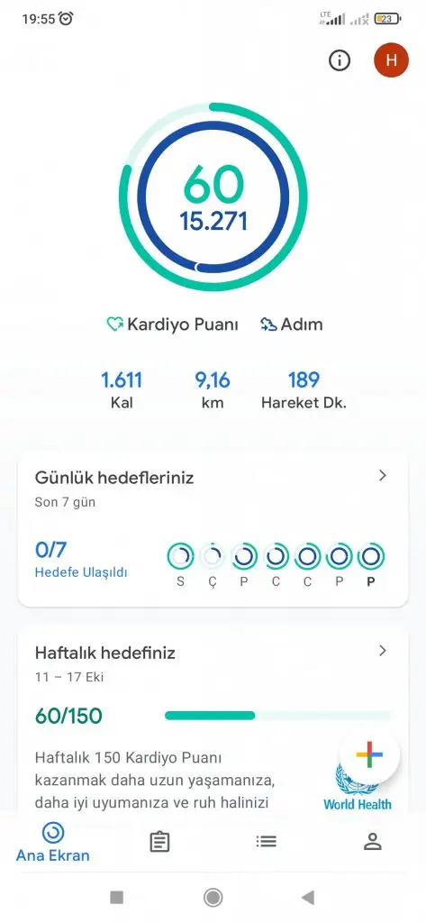Suyu arttirmaya calisiyorum. Adimlar 12000 oldu