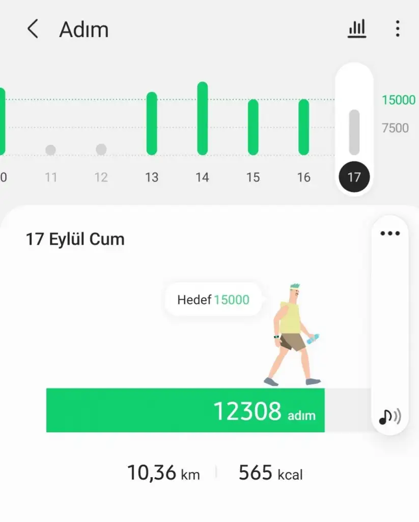 Dünkü adım sayımı bildirmeyi unuttum. 16 Eylül' e ait