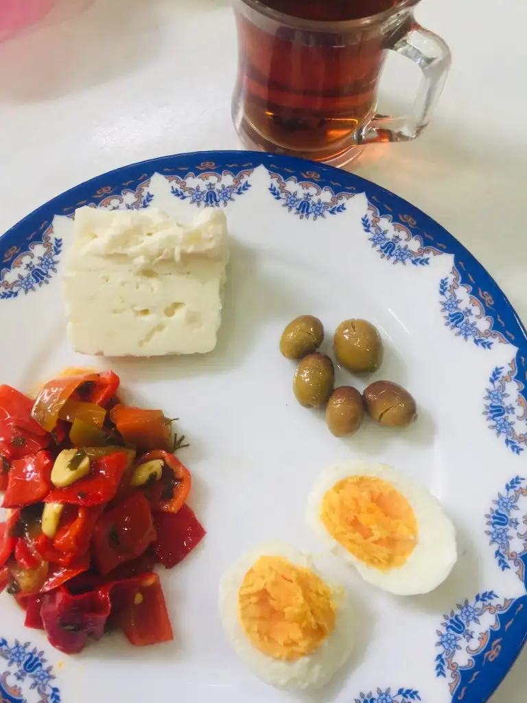 Öğle 13 de kahvaltı 2 yumurta 1 dilim peynir 3 y k yoğurt 1 bardak şekersiz çay
