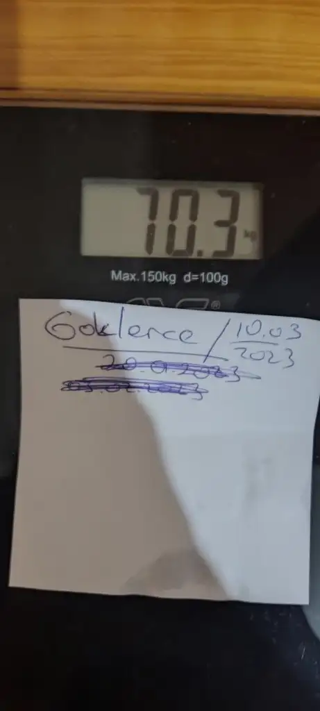 Baslangicin hayırlı olsun canimİlk tarti benden olsun 75 _76.7 çıkmışım 2 yıldır bu kiloyu tartıda görmemiştim regl dönemi 3 gün bugün etki olmuşsa bu kadar olmuş mu bilemem