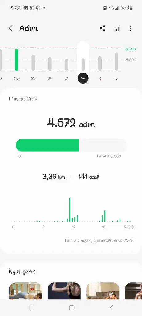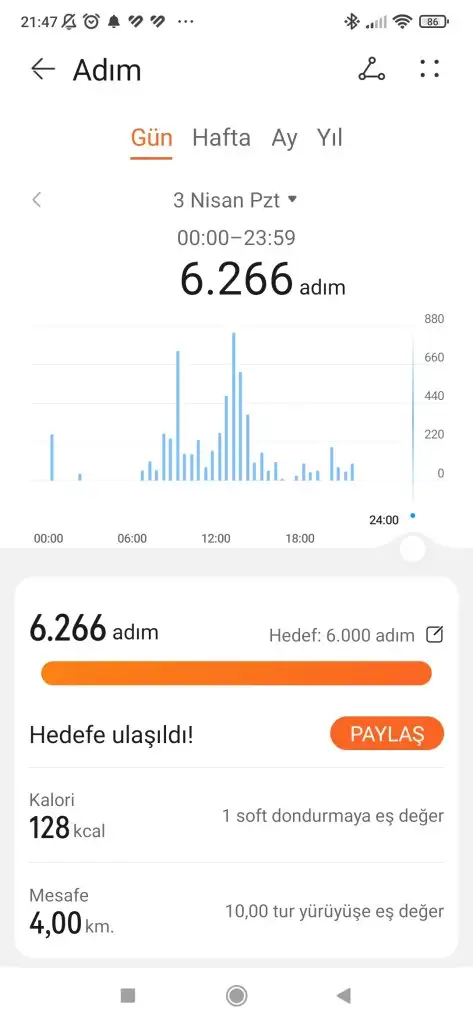 11.257 adım, 10 dk bölgesel, 20 dk cardio