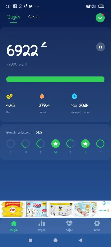 Eve geldikten sonra markete gittik, evdekilere bi bakim sonra yemek Bulaşık alınanları yerleştir. Cocuklar Banyo derken adımlarım sınırlı kaldı. Hedefim 10.000 di ;(