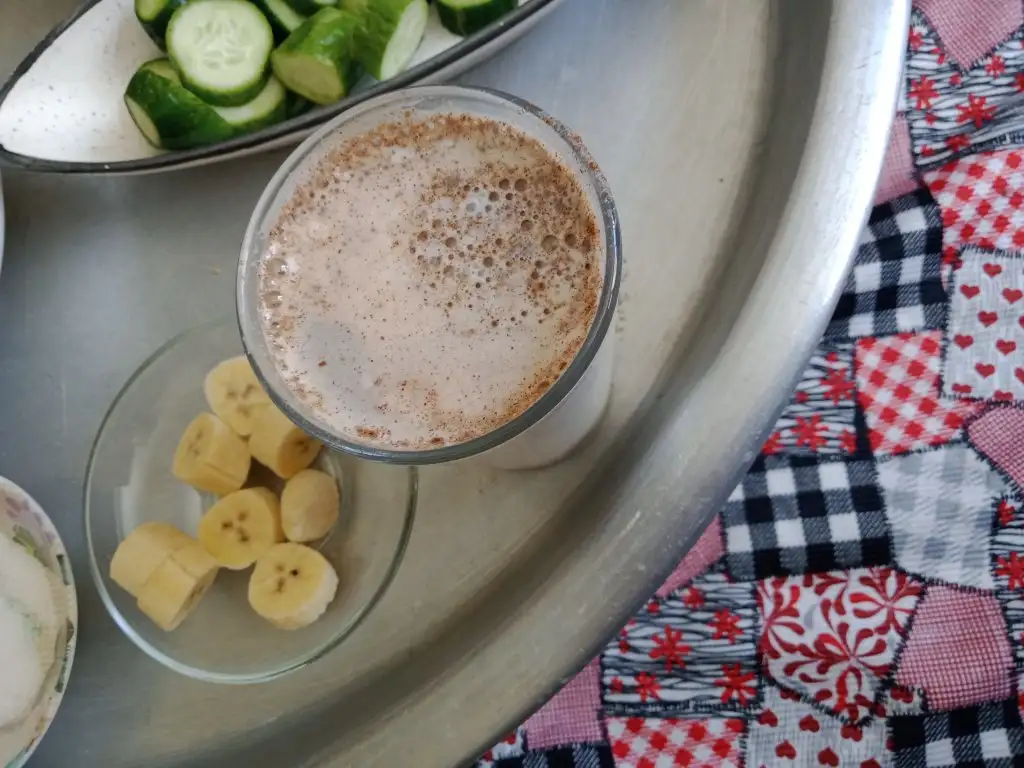 Öğlen öğünü saat 13:40 da yapıldı 1 bardak tarçınlı süt yarım muz