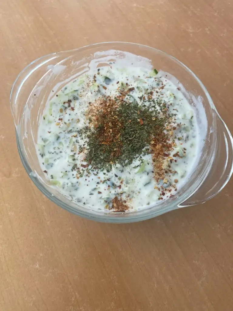 Beş kaşık yoğurt, 3-4kaşık nohut, bir salatalık
