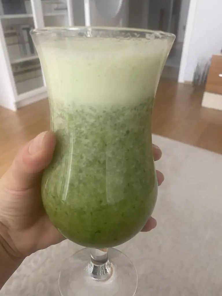 Bir bardak demlenmiş yeşil çayın içerisine bir dilim ananas, biraz da maydanoz