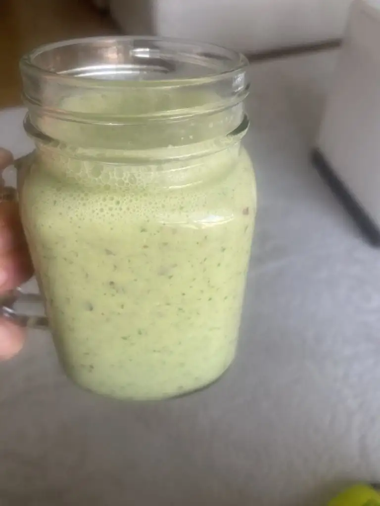 Bir bardak kefir, iki yemek kaşığı yulaf, bir tatlı kaşığı keten tohumu, bir nektarin bıızzzt