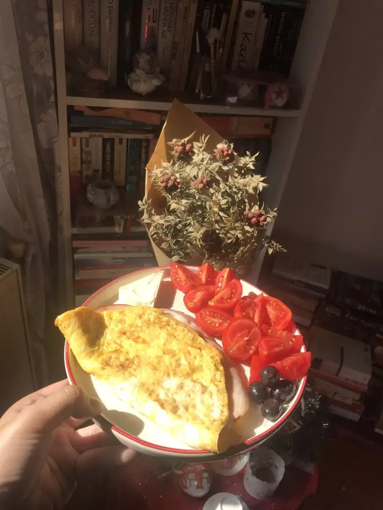 İçerisinde 3 dilim hindifüme ve kaşar var omletin