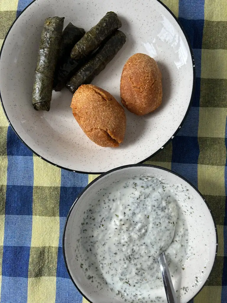 kahvaltıyı öğlen yaptığım için görseldeki köfte sarma ve yoğurdu yedim. Sonrasında çerez tabağı mini :)