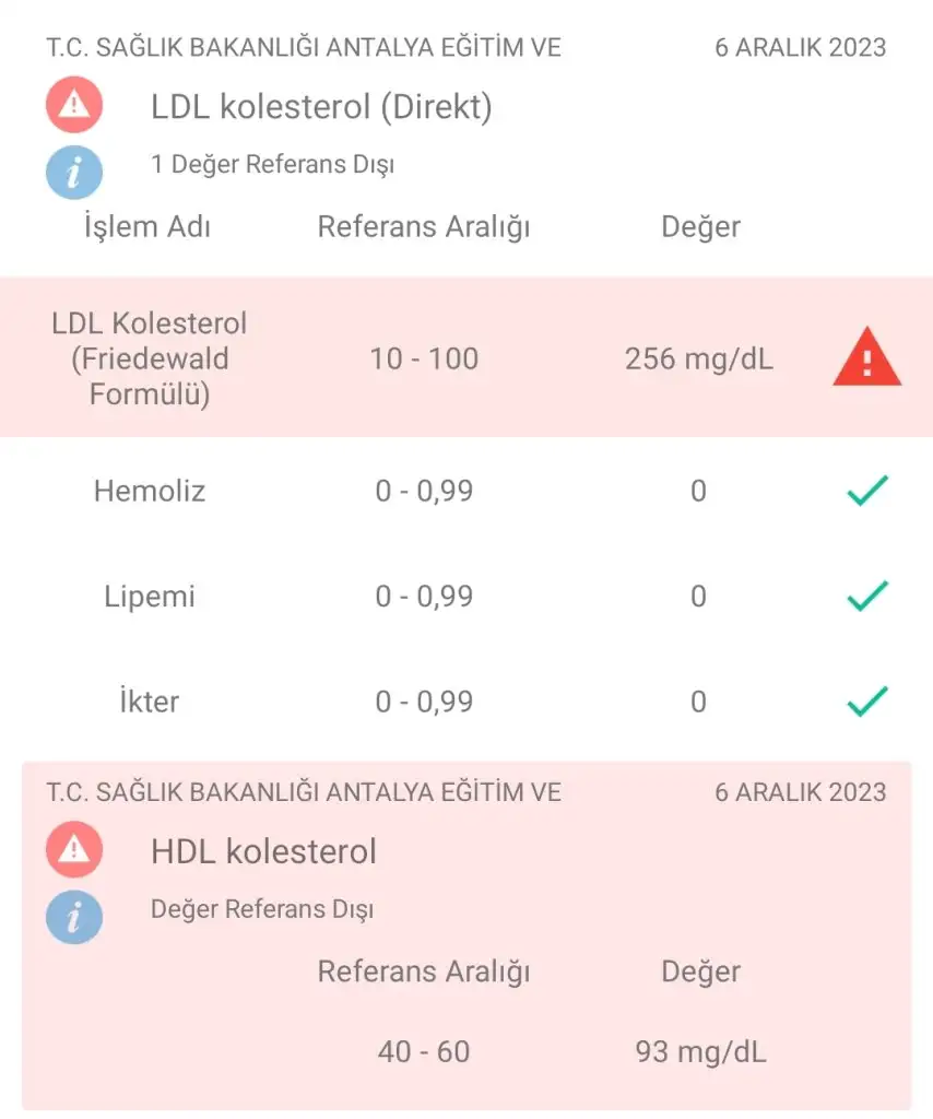 Çok geçmiş olsun çıtırım ilaçla düşüyor ancak oda,özellikle LDL'ye dikkat et kaç çıktı sonuçların.