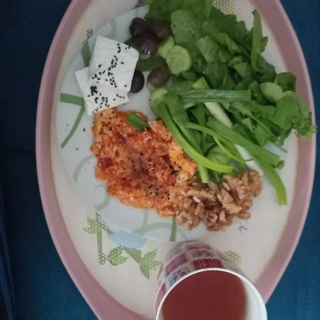 öğle ile akşam yemeği arasında 1 fincan filtre kahve ile 1 fincan yeşil çay içtim.