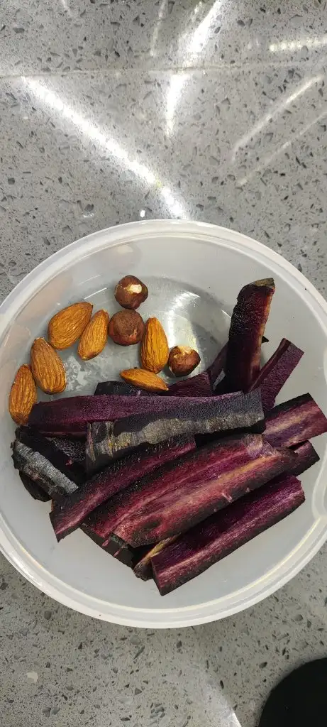 3 den itibaren aralıklı fındık ceviz. Saat 5 de 2 yk pilav 1 kase tavuk çorbası salata yoğurt. Arkadan kuru yemislere devam. Aç değil stresliyim. Tutmaya çalışıyorum kendimi. Su 1.5lt olmuştur