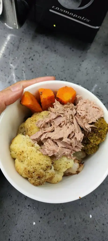 Aksam ogunum 19:00 de firinlanmis sebzeler ve tonbaligi...