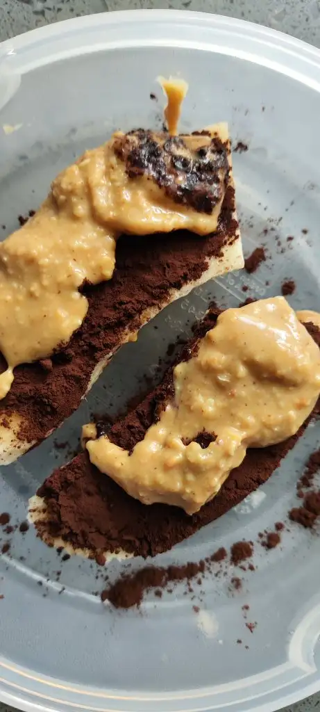 Ara öğün icinde yarım muz ustune biraz kakao ve 1 tk fıstık ezmesi gezdirdim onu yicem (regl donemine 4 gün kaldi tatli istahimi kapatiyor boyle seyler)