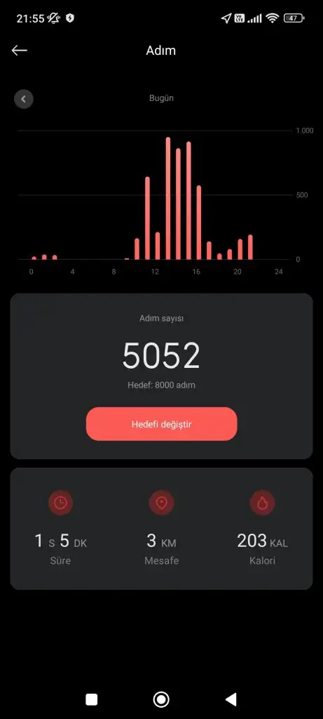 5000 adım ,500 p ( telefonu evde bırakmak zorunda kaldım çocuklardan dolayı yoksa eminim çok daha fazlasını yürüdük bugün )
