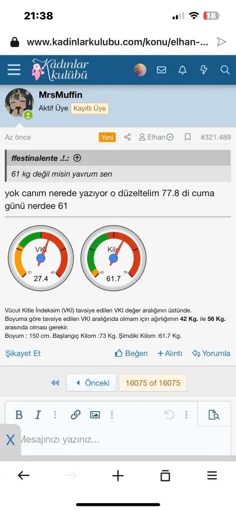 yok canım nerede yazıyor o düzeltelim 77.8 di cuma günü nerdee 6161 kg değil misin yavrum sen