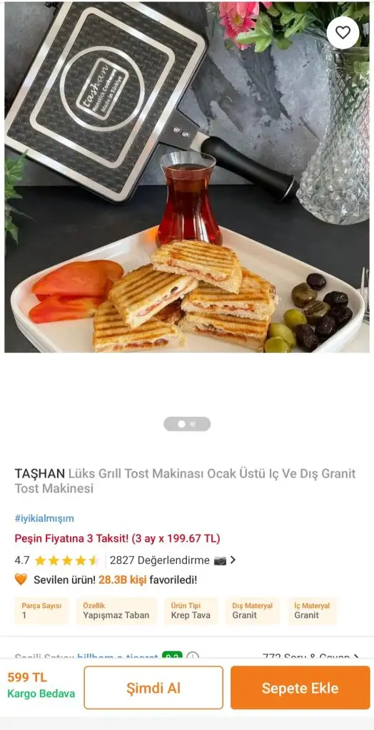 Evet anneme verdim benimkini o kullanıyor memnun.Canım taşhan marka var bende. Granit asla yapışmıyor kolayca yıkanıyor. Mükemmel bir şey tost makinesi cok gereksiz inan.