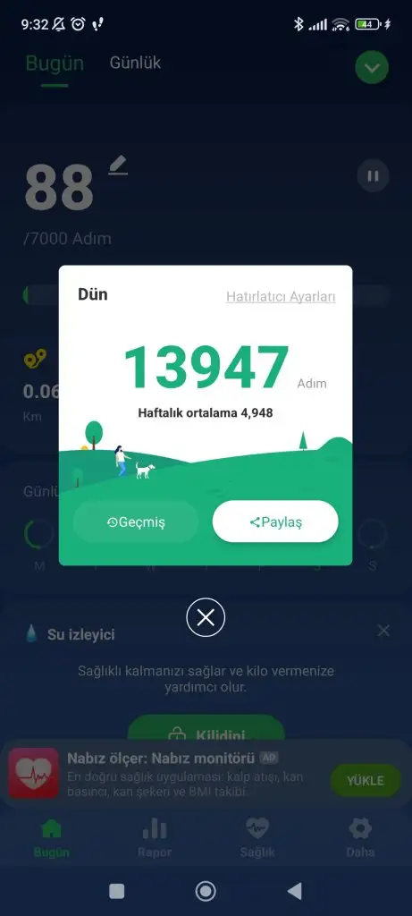 Spor: 8.327 adım, puan 832