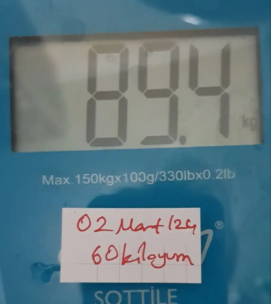 Dün bugün için daha iyi bir kilo görmüştüm ama akşam yemeği yemeden dışarı çıktık.Eve geldiğimizde saat 8.30 du çok acikmistim yine semoote yaptım,bu sebeple bu sabahki kilodayım.Ana yine de mutluyum