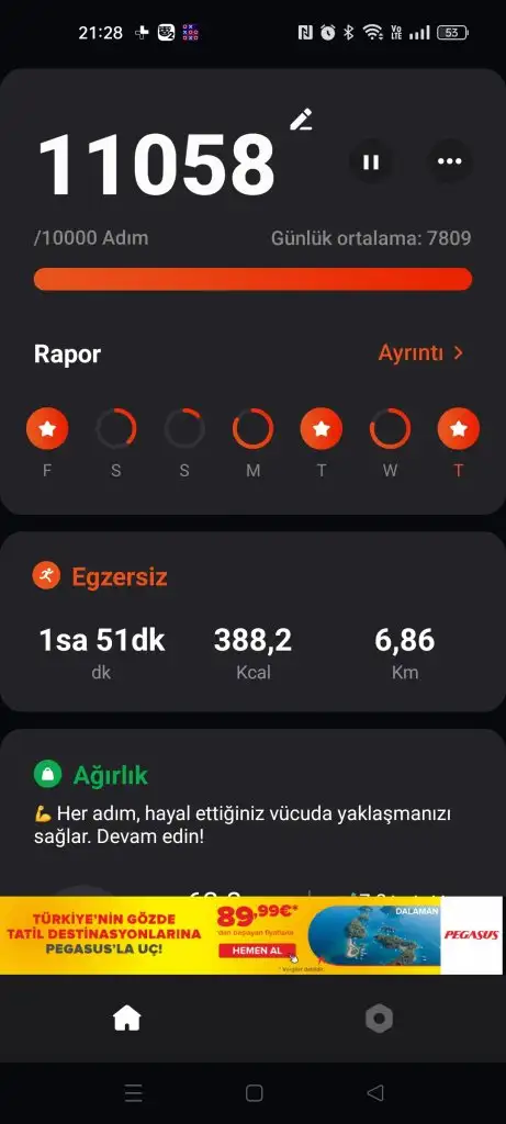Spor tüm gün koşturdum 2.5 saat rahat yürüdüm 150.3 450 p.Cordelia